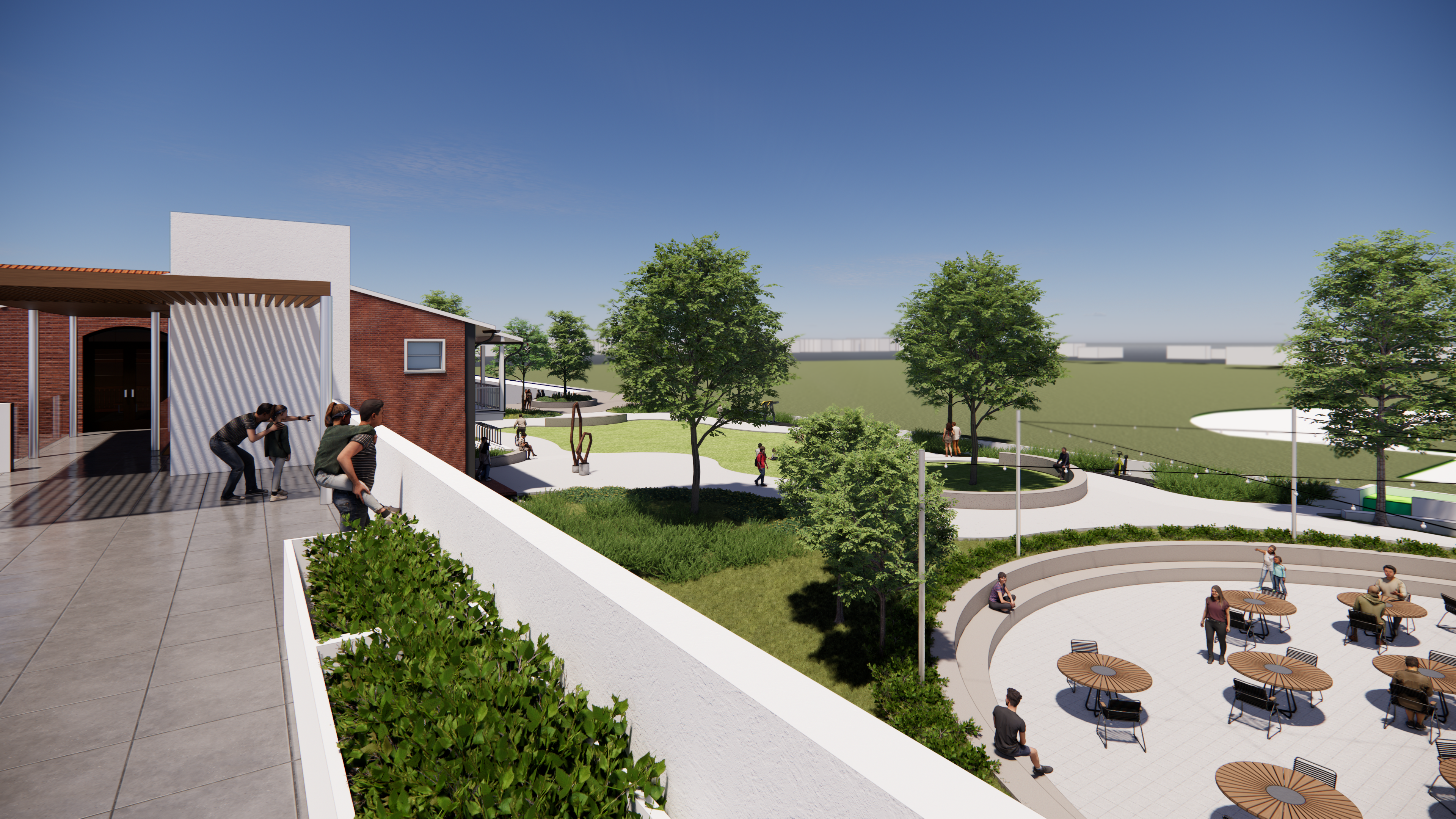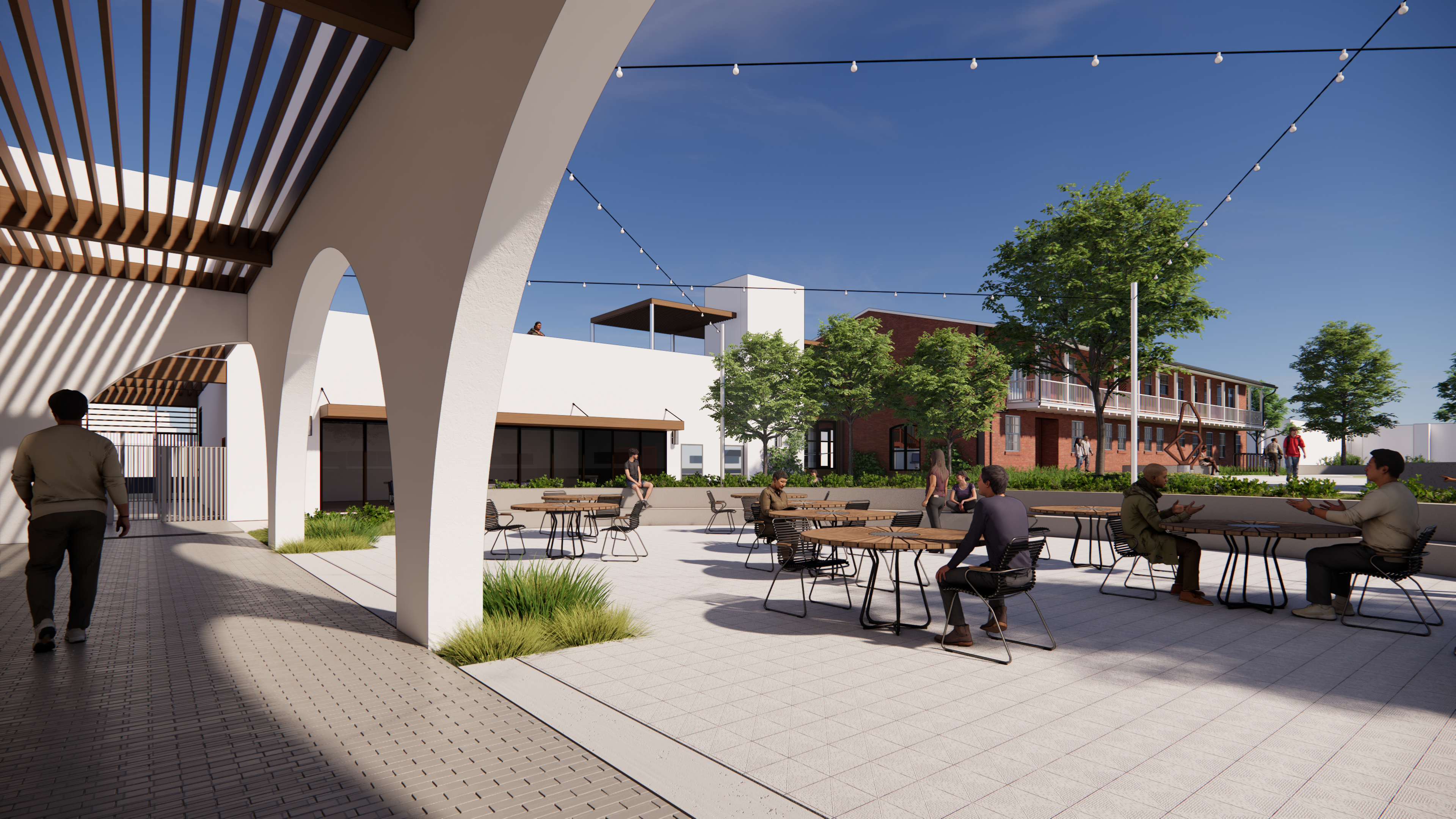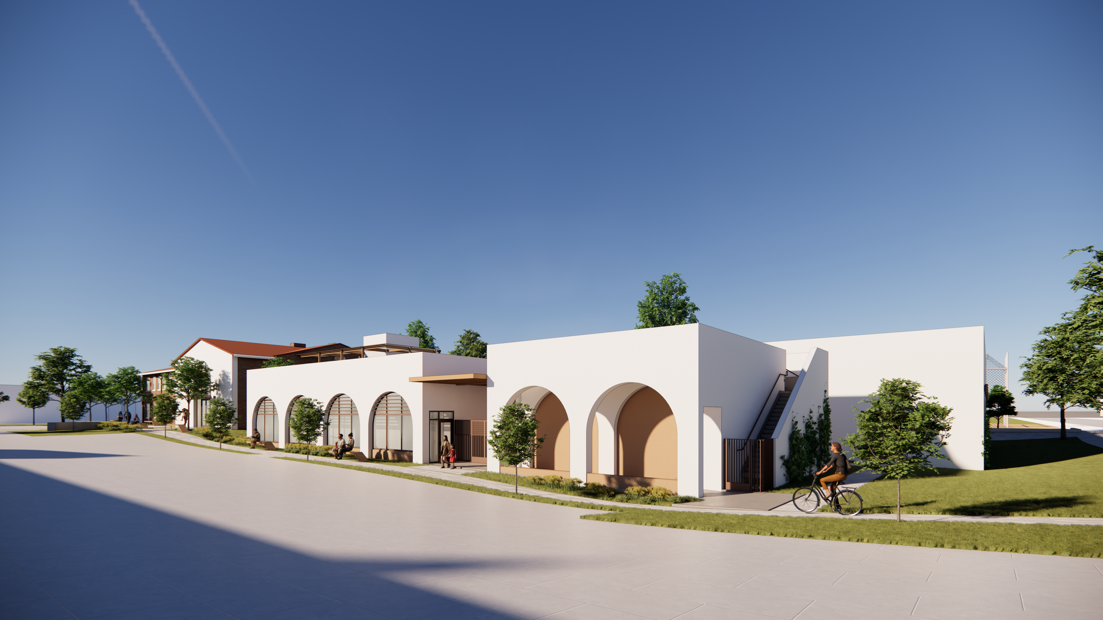 The project involves the adaptive reuse of a two-story historic masonry building totaling approximately 9,000 square feet above grade with an additional 2,500 square feet of basement space. It also includes approximately 8,000 square feet of new Type V construction featuring a high-volume event space, a multipurpose room, supporting restrooms, and a warming kitchen, all integrated with landscaped grounds and on-site parking.